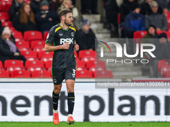 Macaulay Gillesphey of Charlton Athletic moves position during the Sky Bet Championship match between Stoke City and Charlton Athletic at the Britannia Stadium in Stoke-on-Trent, England, on November 25, 2025.