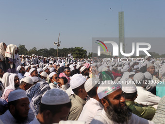 Scholars from Saudi Arabia, India, Pakistan, and several other countries attend a mass gathering organized by the International Majlis Tahaffuz Khatm-e-Nabuwwat at Suhrawardy Udyan in Dhaka, Bangladesh, on November 15, 2025, calling for Ahmadis to be declared non-Muslims.