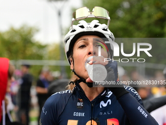 Spanish cyclist Margarita Victo Garcia Canellas participates in the women's elite road race of the 2025 UEC Road European Championships between Privas and Guilherand-Granges in France on October 1, 2025.