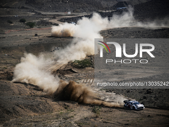 Driver Sami Pajari and co-driver Marko Salminen of the team Toyota Gazoo Racing WRT, Toyota GR Yaris Rally1, face the second day of the race during the FIA World Rally WRC Rally in Jeddah, Saudi Arabia, on November 27, 2025.