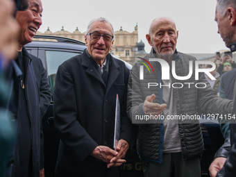 Robert De Niro and Meir Teper during a short visit at the Main Square in Krakow, Poland on November 9, 2025. An American actor is planning to launch a new hotel in the reconstructed building in Krakow under the Nobu brand, of which he is a co-owner.