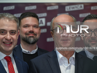 RZESZOW, POLAND – NOVEMBER 22: (L-R) Krzysztof Gawkowski, Deputy Prime Minister and Minister of Digital Affairs; Michał Sztuk, current co-chair of the Podkarpackie New Left; Wlodzimierz Czarzasty, co-chairperson of the New Left (Nowa Lewica) and newly appointed Marshal of the Polish Sejm; and Marcin Kulasek, Minister of Science and Higher Education, are seen after a press conference during the Podkarpackie Congress of the Provincial New Left, where key programmatic and organizational priorities for the party’s new term in the region were presented, in Rzeszow, Subcarpathian Voivodeship, Poland, on November 22, 2025.