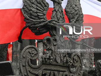 WARSAW, POLAND – SEPTEMBER 17: The Monument to the Fallen and Murdered in the East covered with Polish flags during the ceremony to mark the 86th anniversary of the Soviet invasion of Poland, honoring the victims of the Katyn Massacre and all those killed under Soviet repression, in Warsaw, Poland, on September 17, 2025. The Katyn Massacre, carried out by the NKVD on Joseph Stalin’s orders in the spring of 1940, claimed nearly 22,000 Polish officers, border guards, police, and intellectuals after the German-Soviet pact of 1939, which led to the partition and occupation of Poland at the start of World War II.