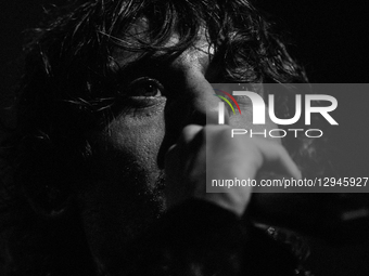 In Naples, Italy, on November 3, 2025, Italian singer and rapper Rkomi performs live at the Teatro Augusteo in Naples during his autumn tour. (Editor Note: the photo has been turned in black and white)