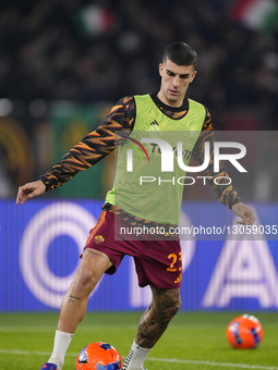 Gianluca Mancini centre-back of Roma and Italy during the warm-up before the Serie A match between AS Roma and SSC Napoli at Stadio Olimpico on November 30, 2025 in Rome, Italy.