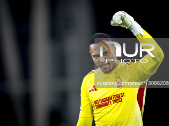 Nottingham Forest FC goalkeeper John Victor plays during the match between FC Utrecht and Nottingham Forest FC at the Stadium de Galgenwaard for the Europa League - League phase - Matchday 6 of the 2025-2026 season in Utrecht, Netherlands, on December 11, 2025.