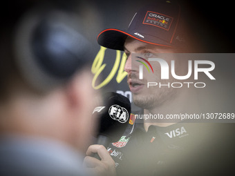 Max Verstappen of Netherlands winner of the Abu Dhabi 2025 Grand Prix at the press conference post race. Verstappen is driving the F1 race car No 1, the Red Bull RB21 for the Oracle Red Bull Racing–Honda RBPT team. Formula 1 Etihad Airways Abu Dhabi Grand Prix at Yas Marina Circuit, United Arab Emirates on December 7, 2025.