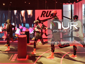 The new running equipment exhibition takes place at the Nike 001 flagship store in Shanghai, China, on October 14, 2025.