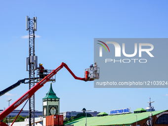 Theresienwiese is the location of the Oktoberfest during the setup period of the beer tents in Munich, Bavaria, Upper Bavaria, Germany, on August 22, 2022. The Oktoberfest (Wiesn) in Munich is the world's largest folk festival.