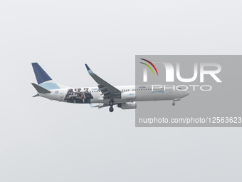 A Boeing 737-84P of ASL Airlines France (French cargo and passenger) approaches Paris-Orly Airport in Creteil, France, on July 16, 2025.