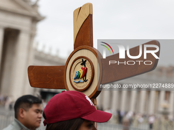 Pilgrims walk the Piazza Papa Pio XII in Rome, Italy on April 16, 2025.