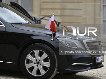 The car and the flag of Poland's President Karol Nawrocki are in the courtyard of the presidential Elysee Palace in Paris, France, on September 16, 2025.