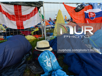 Pilgrims during Pope Francis' Final Mass to mark the end of World Youth Day 2016 with over 1.5 million pilgrims from all around the world in Brzegi, near Krakow. On Sunday, 31 July 2016, in Brzegi, Krakow, Poland.