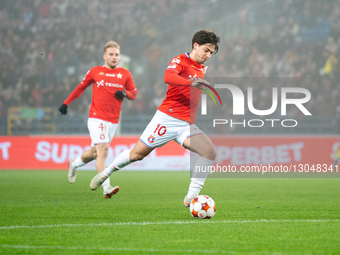 Frederico Duarte plays during the game between Wisla Krakow and Stal Mielec in Krakow, Poland, on November 30, 2025. This is a Betclic 1 Liga, Polish football first league match at Henryk Reyman Municipal Stadium.