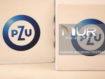 The PZU logo is seen at the 10th Open Eyes Economy Summit at the ICE Krakow Congress Center in Krakow, Poland, on November 19, 2025.