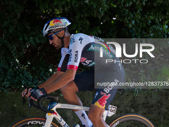 Gianni Moscon rides for Red Bull-Bora Hansgrohe in Legnano, Italy, on October 6, 2025.