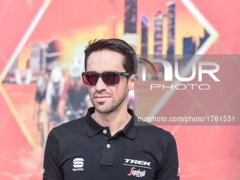 Alberto Contador, a Spanish professional cyclist, one of six riders to have won all three Grand Tours of road cycling, arrives for the Abu Dhabi Tour 2017 - Top Riders photo-call, outside the Yas Viceroy Abu Dhabi hotel. On Wednesday, February 22, 2017, in Crowne Plaza Yas Island, Abu Dhabi, United Arab Emirates.