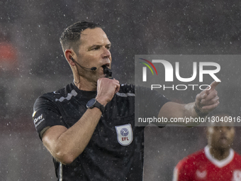 Referee James Linnington officiates the Sky Bet Championship match between Middlesbrough and Derby County at the Riverside Stadium in Middlesbrough, England, on November 29, 2025.