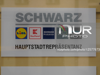 A signboard marks the Hauptstadtreprasentanz (Capital Representation) of the Schwarz Group, featuring the logos of its subsidiaries Lidl, Kaufland, Schwarz Produktion, PreZero, and Schwarz Digits, in Berlin, Germany, on July 19, 2025. The Schwarz Group is one of Europe's largest retail companies.
