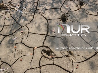 A shoe lies covered with mud at an orchard that is flooded in Pulwama, south of Srinagar, Jammu and Kashmir, on September 15, 2025. Apple growers in Kashmir face heavy losses as recent floods from continuous rainfall damage many orchards during the peak harvest season. The problem worsens with the closure of the Srinagar-Jammu National Highway, which stalls fruit-laden trucks. The combined losses to the apple industry, a major part of the region's economy, are estimated at around Rupees 700 crore.