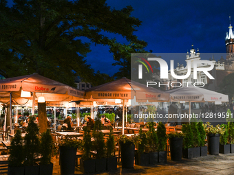 KRAKOW, POLAND – OCTOBER 1: A nearly empty outdoor seating area in Krakow’s historic UNESCO Market Square, Krakow, Poland, on October 1, 2025.