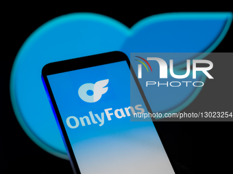 The OnlyFans logo is displayed on a mobile phone with the company branding icon visible in the background in this photo illustration in Brussels, Belgium, on November 24, 2025.