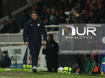 Hartlepool United manager Nicky Featherstone is present during the Enterprise National League match between Hartlepool United and Yeovil Town at Victoria Park in Hartlepool, United Kingdom, on December 6, 2025.
