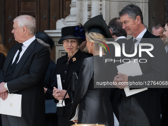 LONDON, UNITED KINGDOM - SEPTEMBER 16, 2025: Anne, Princess Royal and Vice Admiral Sir Timothy Laurence attend a funeral service at Westminster Cathedral for the Duchess of Kent who died aged 92 earlier this month in London, United Kingdom on September 16, 2025. The service is the first Catholic funeral held for a member of the Royal Family in modern British history.