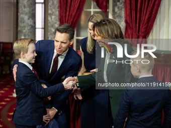 Vice President Kamala Harris Greets Sen. Josh Hawley's (R-MO) children before administering a ceremonial oath of office on the first day of the 119th Congress in Washington, DC, on January 3, 2025.