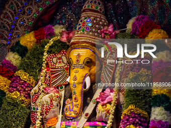 An adorned idol of Lord Vinayagar (Lord Ganesh) is at a Tamil Hindu Temple in Ontario, Canada, on January 14, 2025.