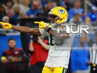 DETROIT,MICHIGAN-NOVEMBER 27: Green Bay Packers wide receiver Dontayvion Wicks #13 reacts after a play during the second half of an NFL football game between the Green Bay Packers and the Detroit Lions in Detroit, Michigan USA, on Thursday, November 27, 2025