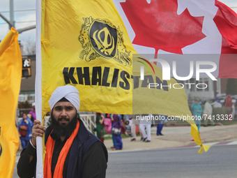 Canadian Pro-Khalistan Sikhs protest against the Indian government and call for a separate Sikh state called Khalistan in Malton, Ontario, Canada, on May 05, 2013. Thousands of Sikhs attended a Nagar Kirtan to celebrate Vaisakhi and to show their discontent with the Indian government. The Khalistan movement refers to a movement which seeks to create a separate Sikh state, called Khalistan in the Punjab region of India. The territorial definition of the proposed nation is disputed, with some believing it should be carved simply out of the Indian state of Punjab, where Sikhs are the majority population. The Khalistan movement has been declared a terrorist movement by the Government of India is illegal within India.