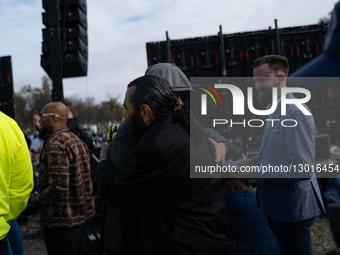 U.S. Representative Al Green (D-TX), front, greets American Opposition founder Carlos Alvarez-Aranyos at an anti-Trump rally in at the Lincoln Memorial in Washington, D.C. on November 22, 2025. The rally, hosted by the 50501 organization, called for the impeachment and removal of President Donald Trump from office.