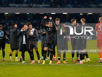 Players of SSC Napoli applauds fans at the end of the Coppa Italia match between SSC Napoli and Cagliari Calcio at Stadio Diego Armando Maradona Naples Italy on 3 December 2025.