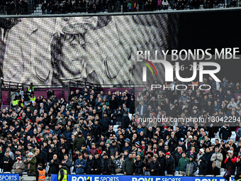 Liverpool fans join in applauding the passing of Billy Bonds during the Premier League match between West Ham United and Liverpool at the London Stadium in Stratford, England, on November 30, 2025.