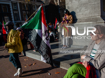 Sudanese people and supporters protest the ongoing war and ethnic cleansing in Sudan during a rally organized in Utrecht, The Netherlands, on November 9, 2025.