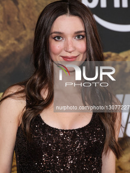 American actress Nicole Brydon Bloom arrives at the Los Angeles Premiere Of Amazon Prime Video's 'Fallout' Season 2 held at the Academy Museum of Motion Pictures on December 8, 2025 in Museum Row, Miracle Mile, Los Angeles, California, United States.