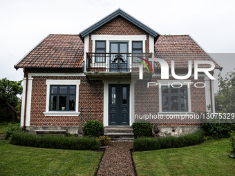 The facade of a traditional brick house is on Ven (Hven), Sweden, on June 8, 2025.