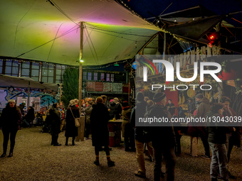 Visitors enjoy an evening at Mondscheinexpress Bahnwarter Thiel Christmas Market in Munich, Bavaria, Germany, on November 30, 2025.
