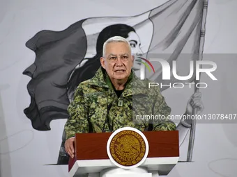 Minister of Mexican National Defense, Ricardo Trevilla Trejo, speaks during the monthly security report at a press conference in the National Palace in Mexico City, Mexico, on December 9, 2025.
