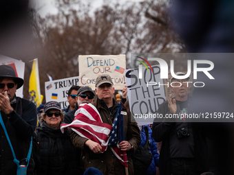 A woman in Trump-inspired attire applauds Steve Bannon at the annual Conservative Political Action Conference (CPAC) in National Harbor, MD, February 24, 2024. A roster of Republican state and federal elected officials are speaking, as is the party frontrunner in the U.S. 2024 Presidential election, Donald Trump.