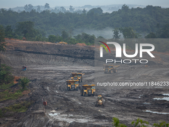 A coal mining truck operates on a haul road at an opencast coalmine in Kalimantan, Indonesia, on December 8, 2024. Environmental activists express concern about the slow growth of renewable energy and the continued reliance on coal. This is particularly concerning because, in 2001, Indonesia had 93.8 million hectares of primary forest, covering more than 50% of its total land area. By 2023, Indonesia had lost 292 thousand hectares of primary forest, equivalent to 221 million tons of CO2 emissions. Of this loss, 144 thousand hectares are located within Indonesia's official forest land cover classes and have a patch size larger than two hectares. Coal consumption in Indonesia has surged in the last decade. In 2013, Indonesia's coal consumption is recorded at 72.07 million tons. This figure jumps to 138.42 million tons in 2019 and further increases to 212.87 million tons in 2023. Meanwhile, the Minister of Energy and Mineral Resources (ESDM) acknowledges that Indonesia is still dependent on coal to meet its energy needs and will require a significant amount of time to transition away from this dependency.