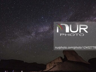 The Milky Way Galaxy appears over a Kalut in the Shahdad Kalut Desert near Kerman, 1,335 km (830 miles) southeast of Tehran, Iran, on May 22, 2025, at midnight. The word ''Kalut'' refers to a natural landform created by wind erosion in arid desert environments. Kaluts are large ridge-like or tower-shaped formations made from compacted sand and soil, sculpted over time by strong desert winds.