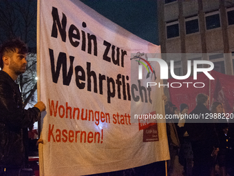 More than a hundred people take part in a protest against the German government's new compulsory military recruitment in Cologne, Germany, on November 14, 2025.