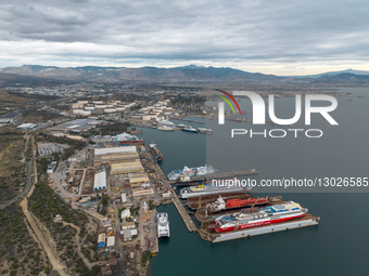 A view of Elefsina shipyards, which are controlled by the US-based ONEX Shipyards and Technologies Group, in Elefsina, Greece, on November 25, 2025. Greece aims to transform Elefsina Shipyards and the wider port area into a major logistics and energy hub to counterbalance the Chinese-controlled port of Piraeus, a move heavily backed by the United States.