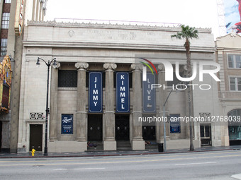 (FILE) Disney's ABC pulls 'Jimmy Kimmel Live!' on Wednesday, September 17, 2025 after FCC chair criticizes the host's Charlie Kirk comments. HOLLYWOOD, LOS ANGELES, CALIFORNIA, USA - MARCH 31: A view of Jimmy Kimmel Live on March 31, 2020 in Hollywood, Los Angeles, California, United States. Los Angeles tourism and entertainment industry businesses are temporarily closed amid the coronavirus COVID-19 pandemic after the 'Safer at Home' order issued by both Los Angeles Mayor Eric Garcetti at the county level and California Governor Gavin Newsom at the state level on Thursday, March 19, 2020 which will stay in effect until at least April 19, 2020.