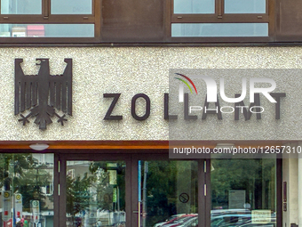 The German Customs Office (Zollamt) building is in Kempten, Bavaria, Swabia, Allgau, Germany, on August 17, 2025. The customs office is responsible for collecting taxes and customs duties, monitoring cross-border goods traffic, and combating undeclared work and illegal employment.