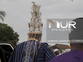 One of the newly crowned kings departs the palace during a media briefing to kick off the Olojo Cultural Festival, an annual cultural event in the ancient city of Ile-Ife to celebrate the day of the first dawn, at the Ooni Palace in Ile-Ife, Osun State, Nigeria, on September 20, 2025.