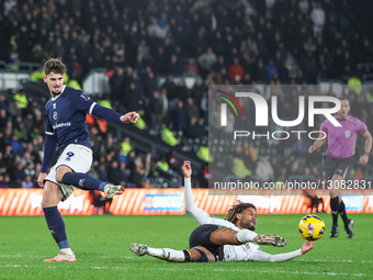 Joe Ward of Derby County plays during the Sky Bet Championship match between Derby County and Millwall at Pride Park in Derby, England, on December 10, 2025.