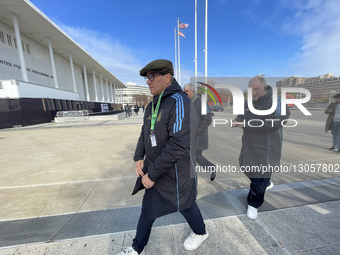 Delegates from Argentina are outside the theater at the Kennedy Center in Washington, D.C., on December 4, 2025, where preparations are being finalized for the 2026 FIFA World Cup draw.